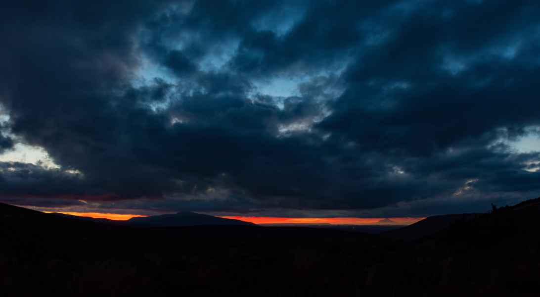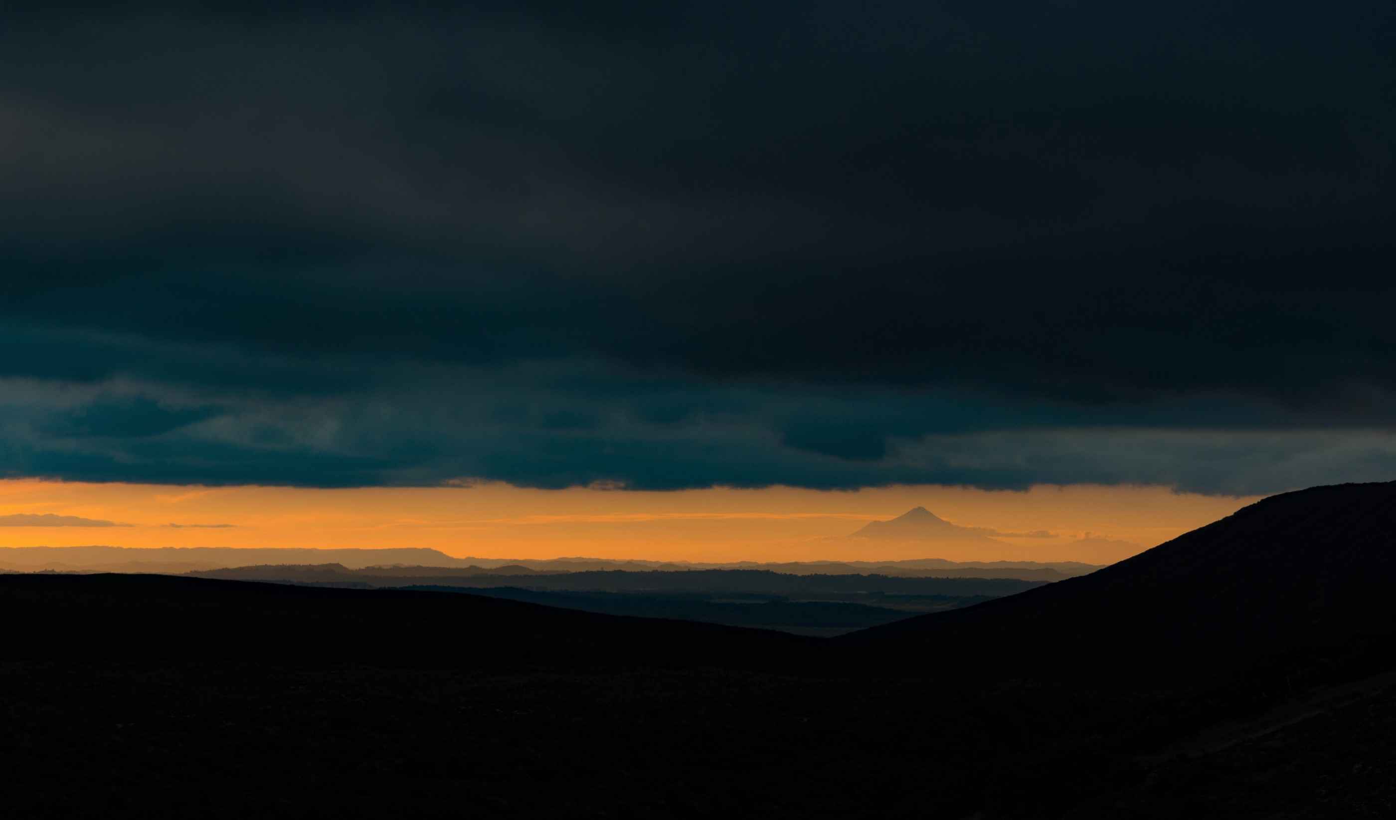 Arrivés à la première hut, la Mangatepopo hut, on a pu admirer un coucher de soleil à tomber par terre ! Avec le Mont Taranaki qui nous faisait coucou de loin, magique !