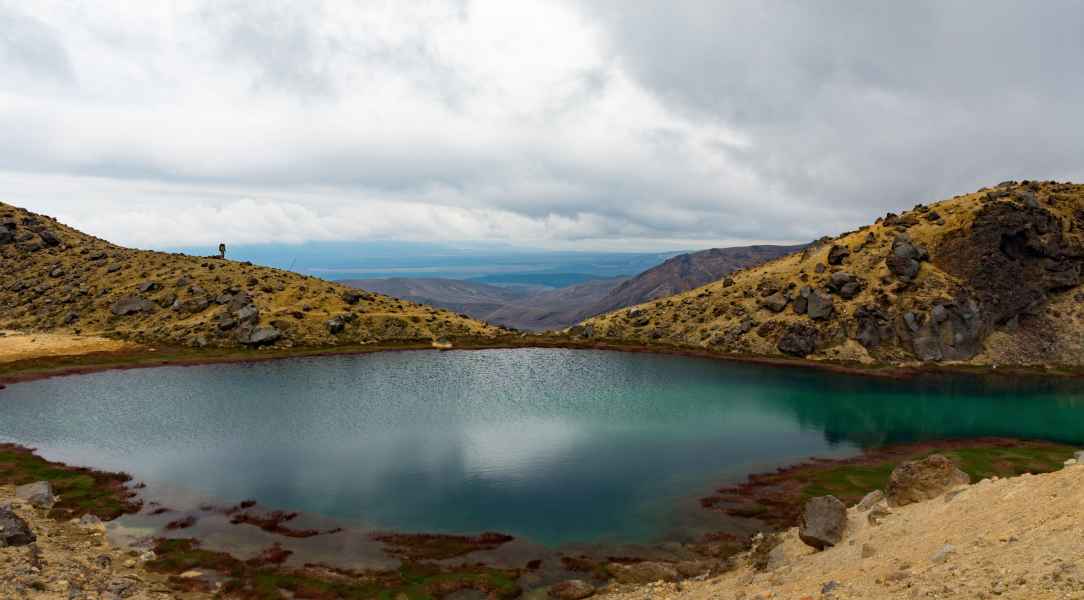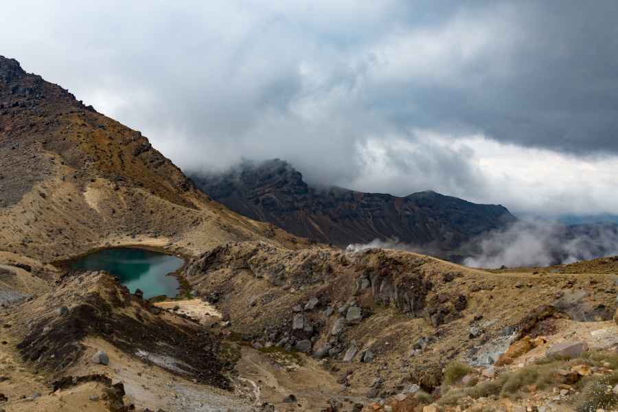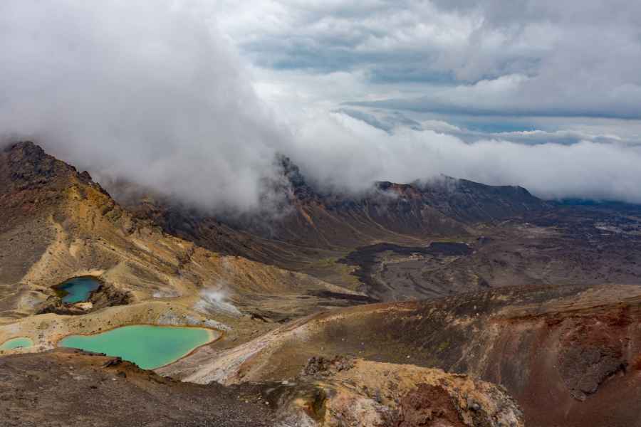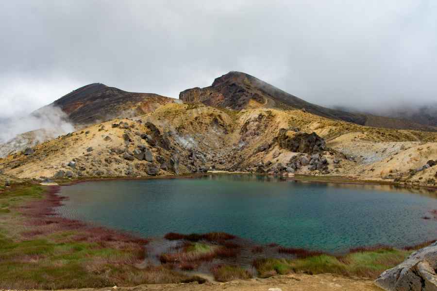 Et oui, les voilà, les Emerald Lakes ! Il y a aussi le Red Crater, cratère d’un volcan qui fume encore, et le Blue Lake non loin de là.