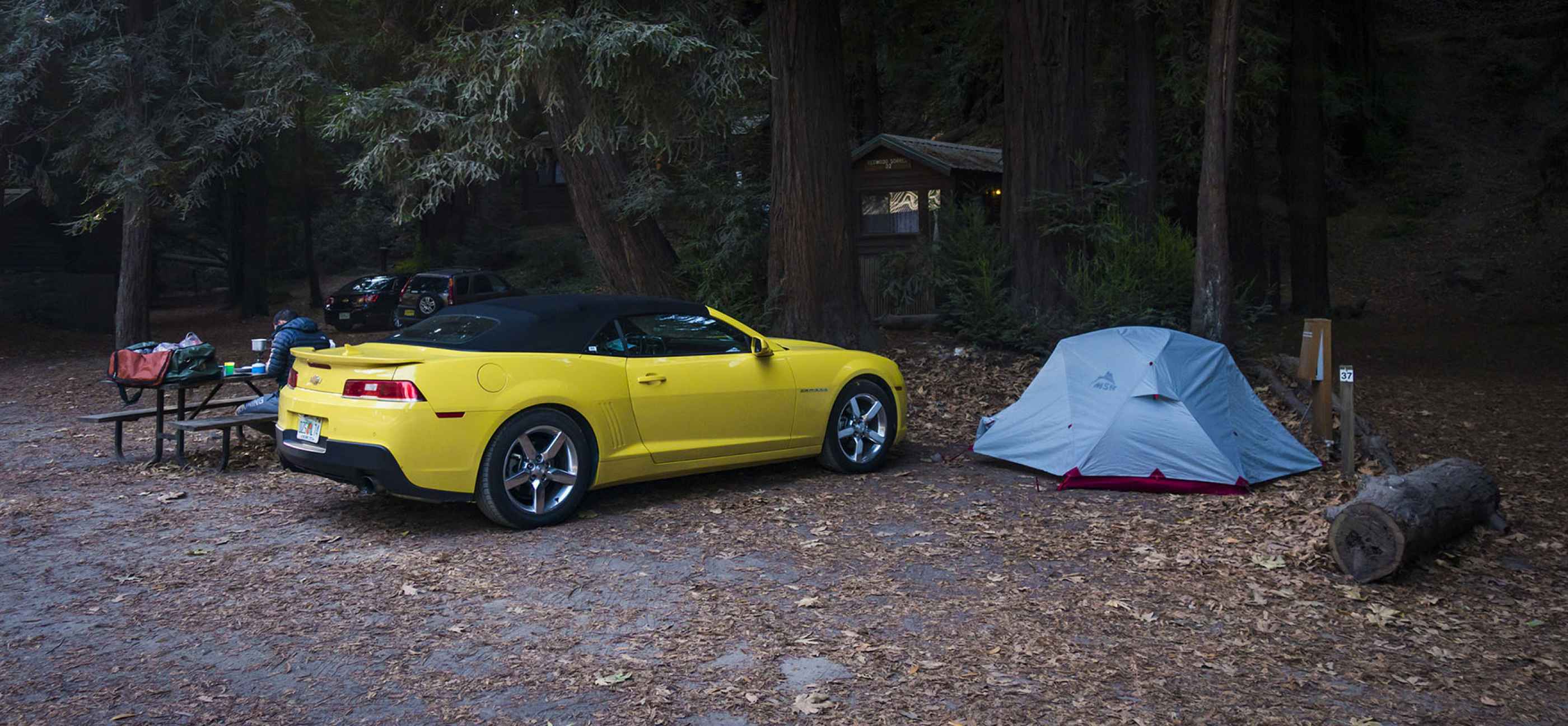 Deuxième conseil, si tu fais un roadtrip, ne prend pas la plus belle des voitures si elle n’a pas un coffre pratique pour choper tes affaires dedans, et un mode 4×4 sinon tu peux aller nulle part. Typiquement, quelqu’un a été sympa et nous a permis d’avoir une Camaro pour à peine 600$ pour le mois (en fait la vraie histoire c’est que le pelo de la location a voulu nous esbroufe et il n’y est pas arrivé). Seulement c’était trop la galère quand on déballait tout pour camper! Alors c’est sûr tu vas vite, tu double tranquillou sur les routes, mais bon dès que y’a un petit chemin qui sent bon la noisette, tu peux pas y aller et c’est comme ça qu’on a loupé des randos à faire, dans la Death Valley notamment.